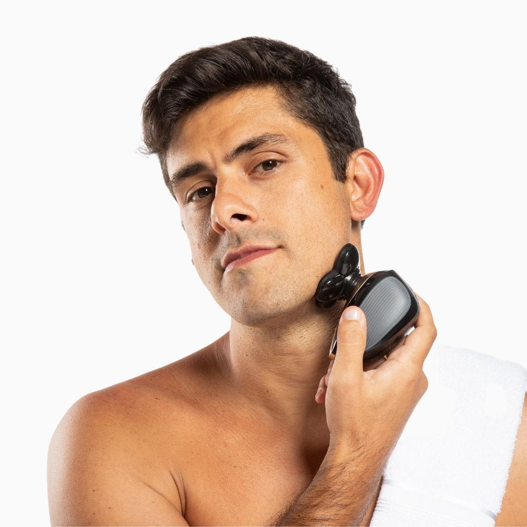 Suas lâminas são rotativas e autoafiáveis, contornam o rosto trazendo um barbear rente a pele como na navalha!